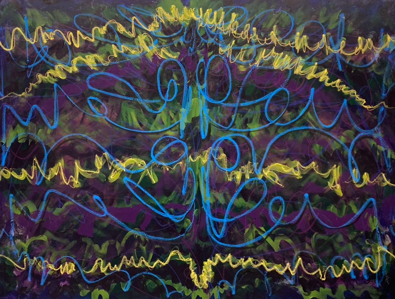Just a little background on my art - I paint with both my hands on large canvases, kinda of like a way to integrate all of me, both sides of my brain and body. Its all intuitive and I try to let the unconscious speak through me