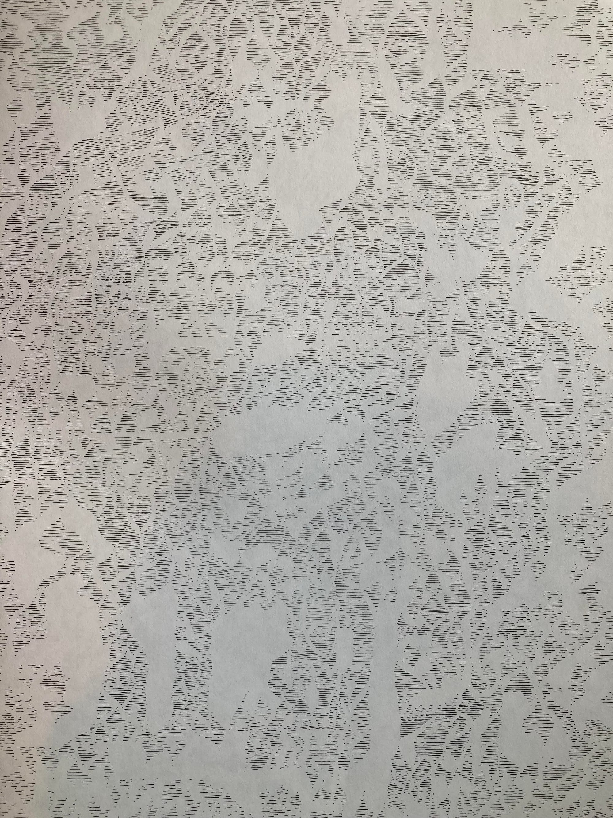 A devotional automatic improvisation in the sense that one is willing to participate in this practice towards the unknown, in service of excavating some personal/ impersonal information that you could not think your way towards. However the result is a fully determined full page of marks, code, information with every aspect of the piece connected to every other aspect via and through the space that remains an unbroken whole.