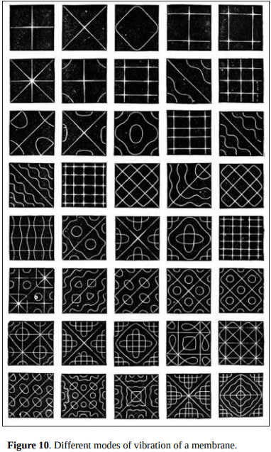 "Naturally, we can no longer visualize experiences as ripples, for the membrane is not a fluid. Imagine instead that experiences are vibrations of the membrane. The qualities of experience now correspond to the specific patterns of vibration of the membrane."